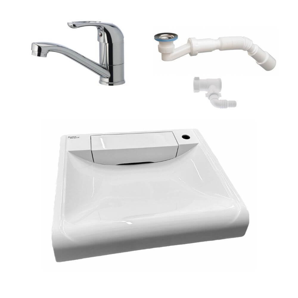 - Комплектація: умивальник, комплект кріплень, сифон (опціонально), відвод води для пральної машини (опціонально), змішувач (опціонально)
