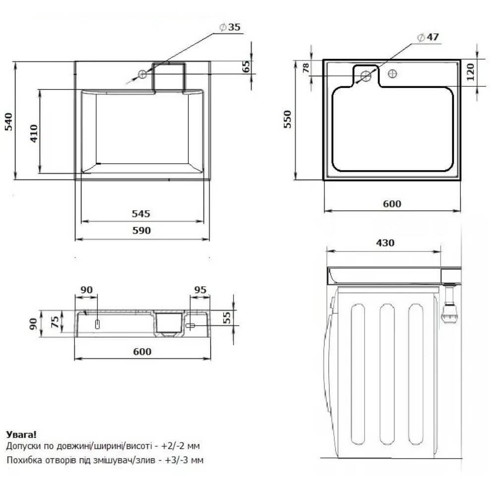 1 відгук для Раковина акрилова 60х55см на пральну машину ЕК11