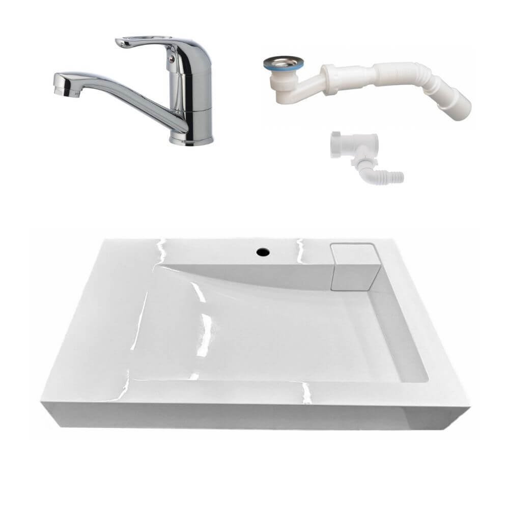- Комплектація: умивальник, комплект кріплень, сифон (опціонально), відвод води для пральної машини (опціонально), змішувач (опціонально)